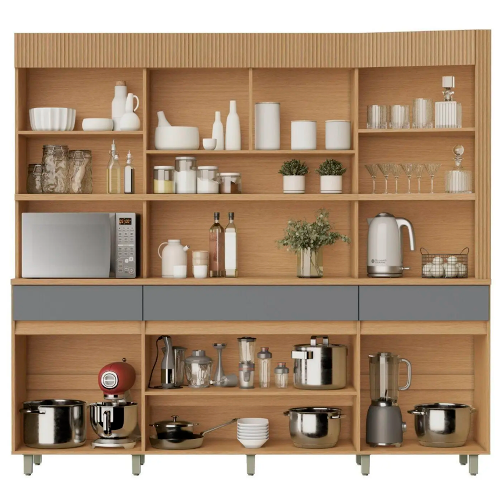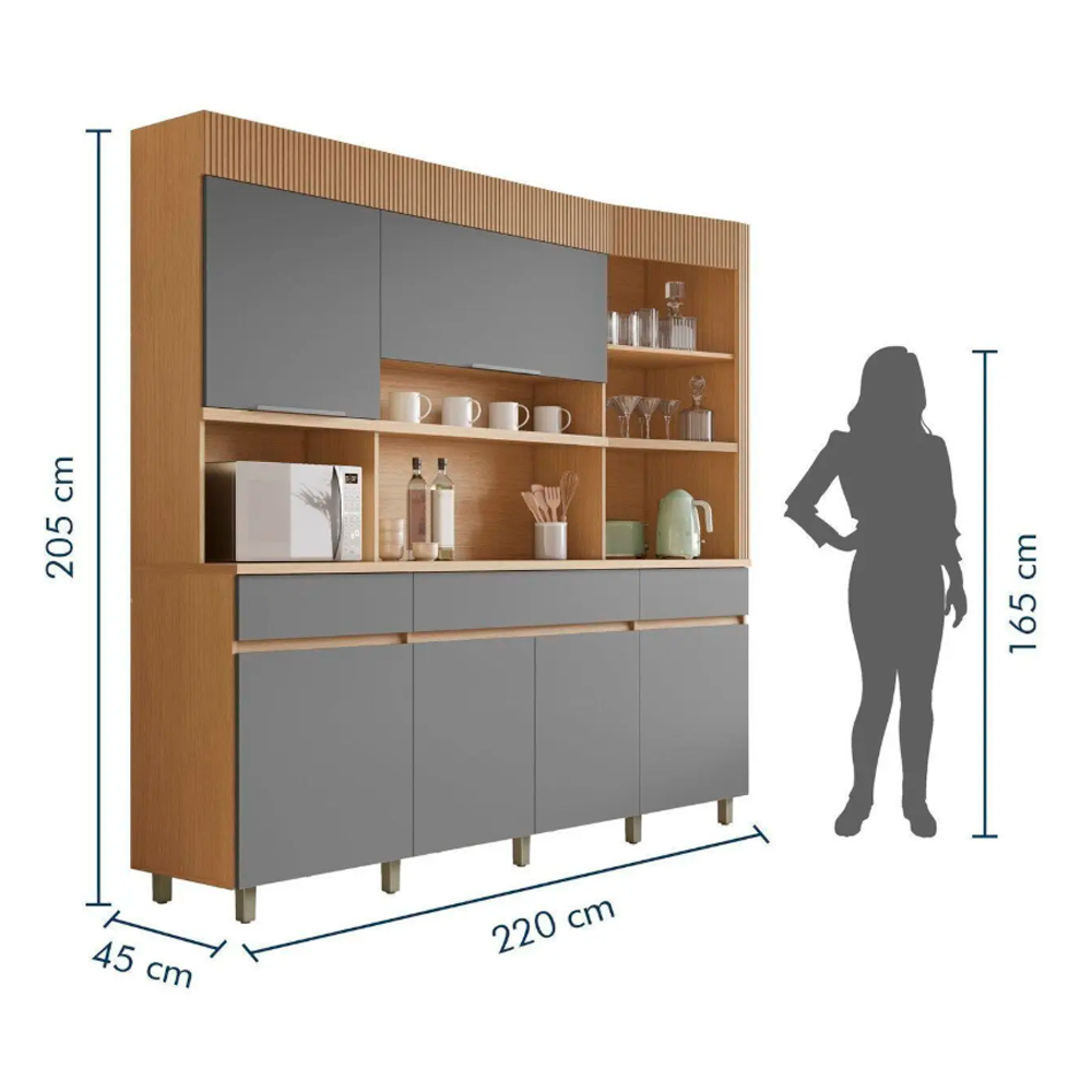 Armário de Cozinha 6 Portas 3 Gavetas 220cm 100% Mdf Realeza Nesher Móveis Carvalho Titan