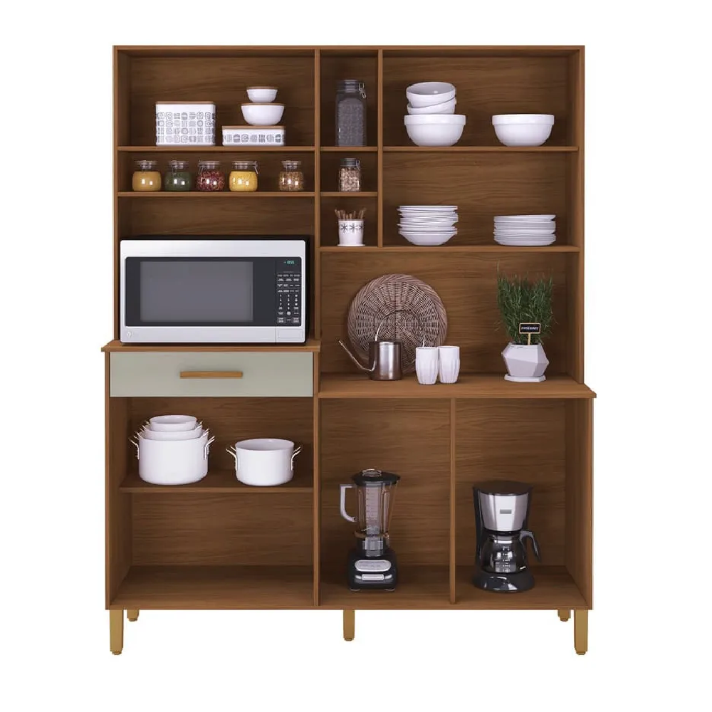 Armário Kit de Cozinha 7 Portas 1 Gaveta 160 cm Freijó Off White Indekes Braga