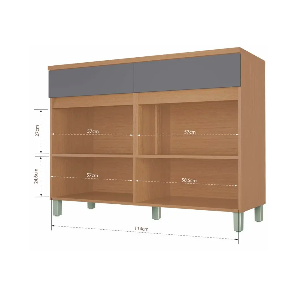 Balcão de Cozinha 2 portas 2 Gavetas Realeza Premium 120cm MDF Nesher Móveis