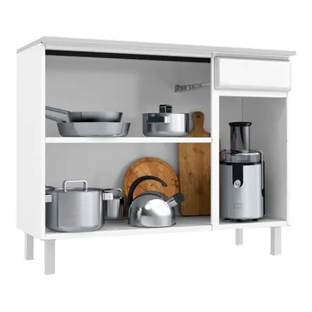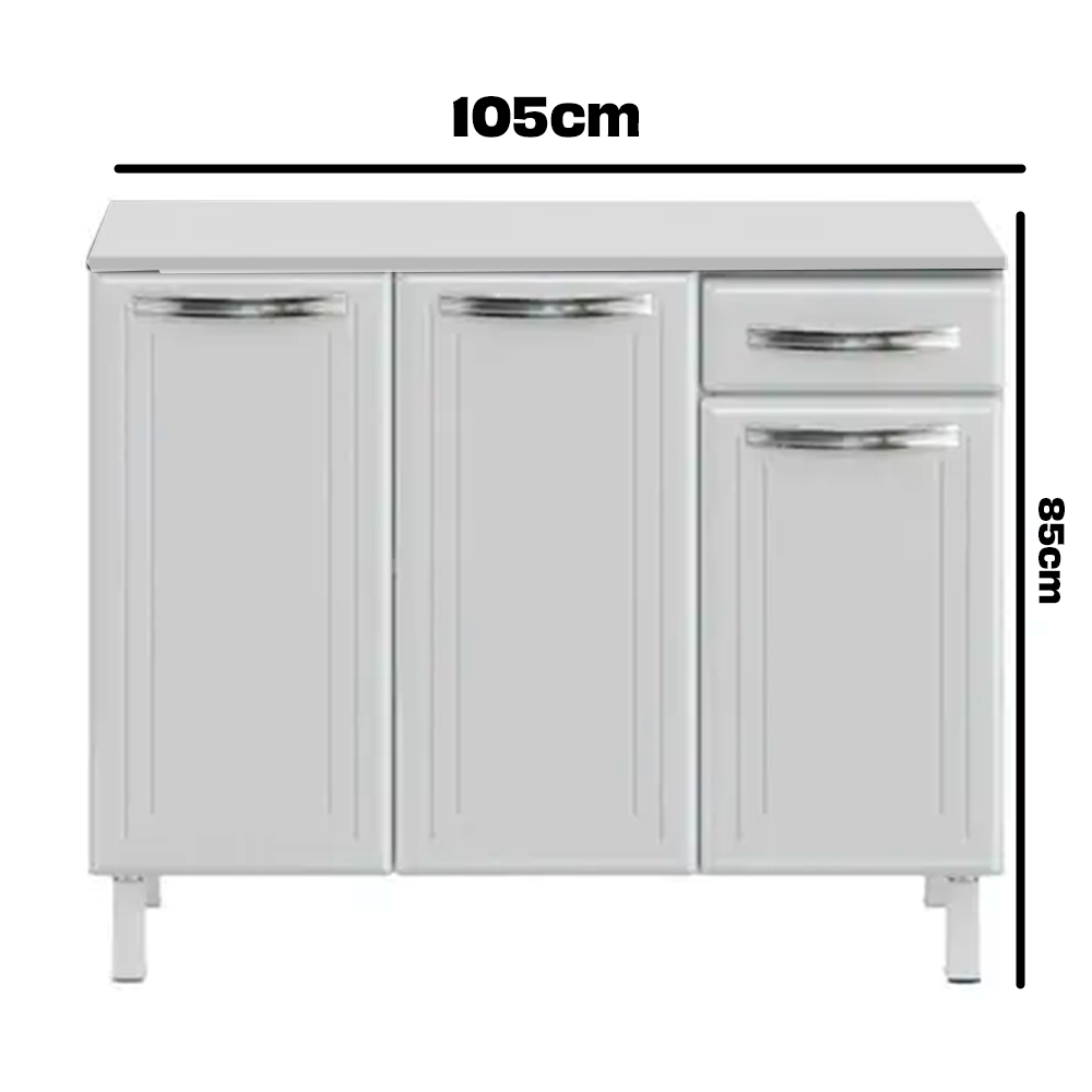 Balcão de Cozinha em Aço 3 Portas 1 Gaveta Branco Esmeralda Telasul
