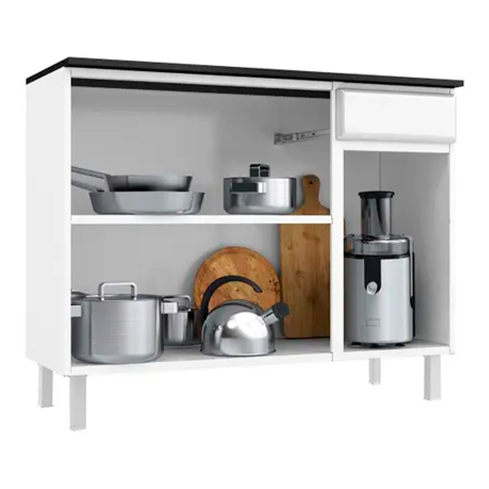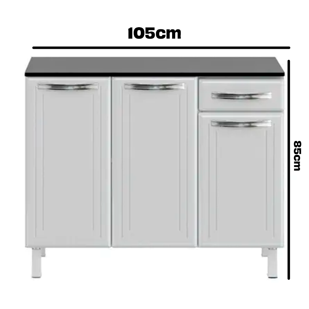 Balcão de Cozinha em Aço 3 Portas 1 Gaveta Branco Esmeralda Telasul Tampo Cinza