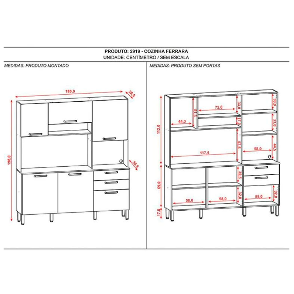 Cozinha Ferrara 6 Portas e 2 Gavetas Freijó Supremo Ripado - Kits Paraná