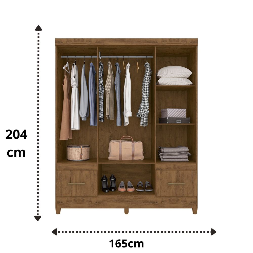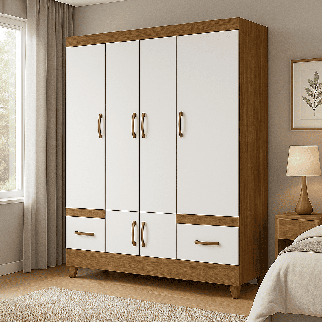 Guarda Roupa de Casal Moval 6 Portas, Pé e 2 Gavetas MS-912 Freijó Off White