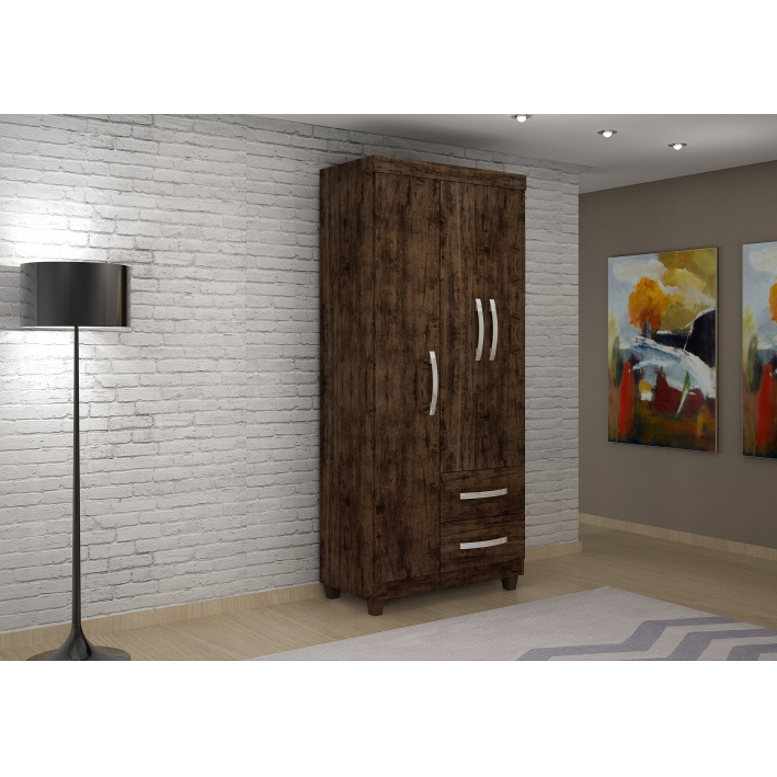 Guarda Roupa Magno Móveis Merengue 3 portas e 2 gavetas Café Fosco