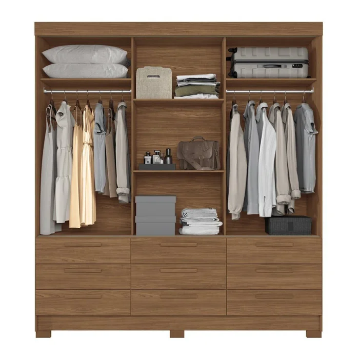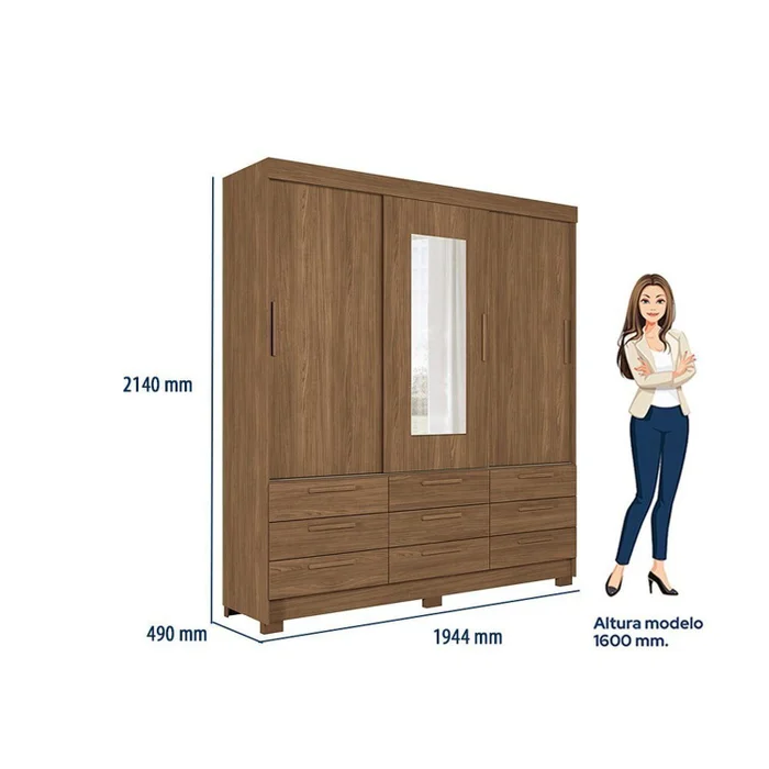Guarda Roupa Santos Andirá Morretes 3 Portas de Correr 9 Gavetas com Espelho Jatoba