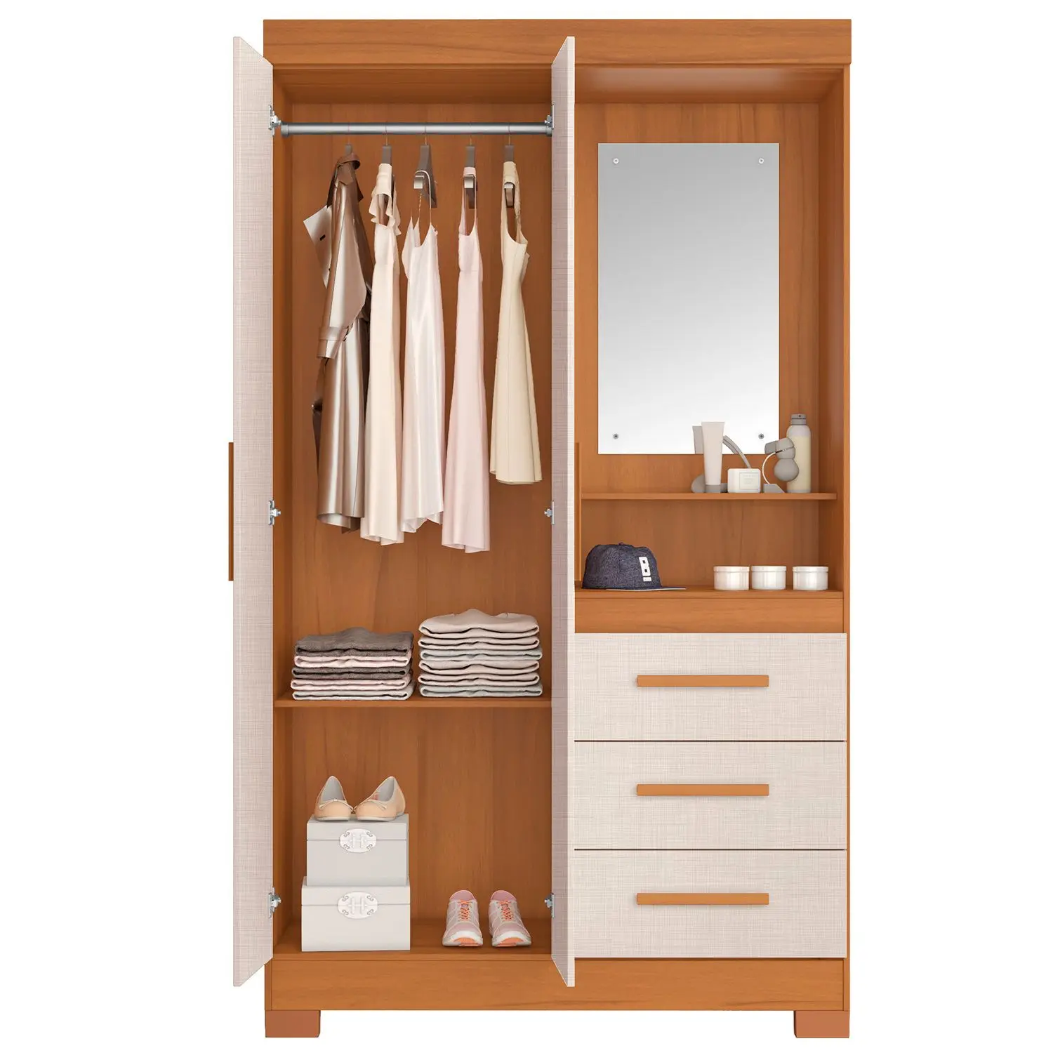 Guarda-Roupa 2 Portas e 3 Gavetas Com Espelho NT6020 Freijó Off