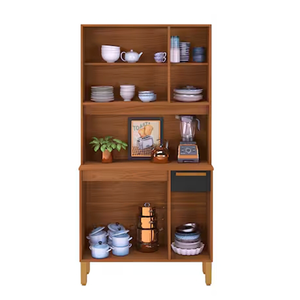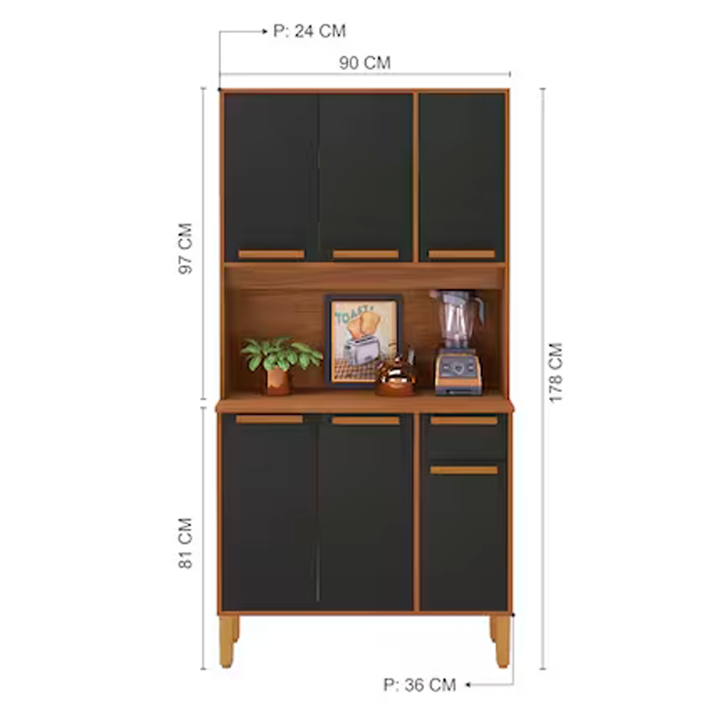 Kit Cozinha Compacta Indekes Lagos 6 Portas e 1 Gaveta MDP 90,6cm de Largura Freijó Chumbo