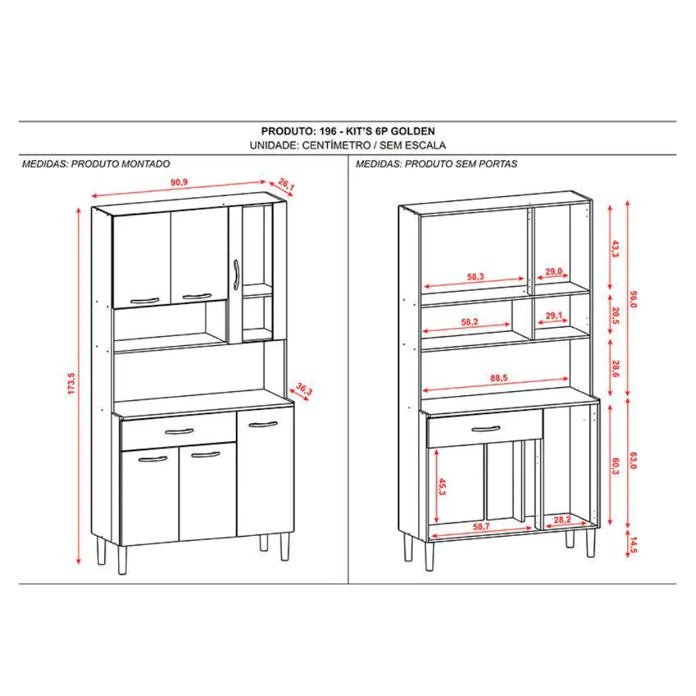Kit Cozinha Golden 6 Portas Freijó Soft - Kits Paraná